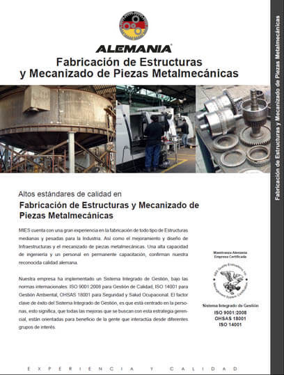 Para ello, nuestra empresa cuenta con un completo sistema de Gestión integrado de Calidad, que permite que cada uno de sus procesos, desde la ingeniería básica hasta la recepción de las obras se encuentre bajo un estricto control y seguimiento. La Certificación Integrada MIES incluye: ISO 9001:2017 / Sistema de Gestión de Calidad, ISO 14001:2015 / Sistema de Gestión Ambiental e ISO 18001:2007 / Sistema de Gestión de Seguridad y Salud en el Trabajo.